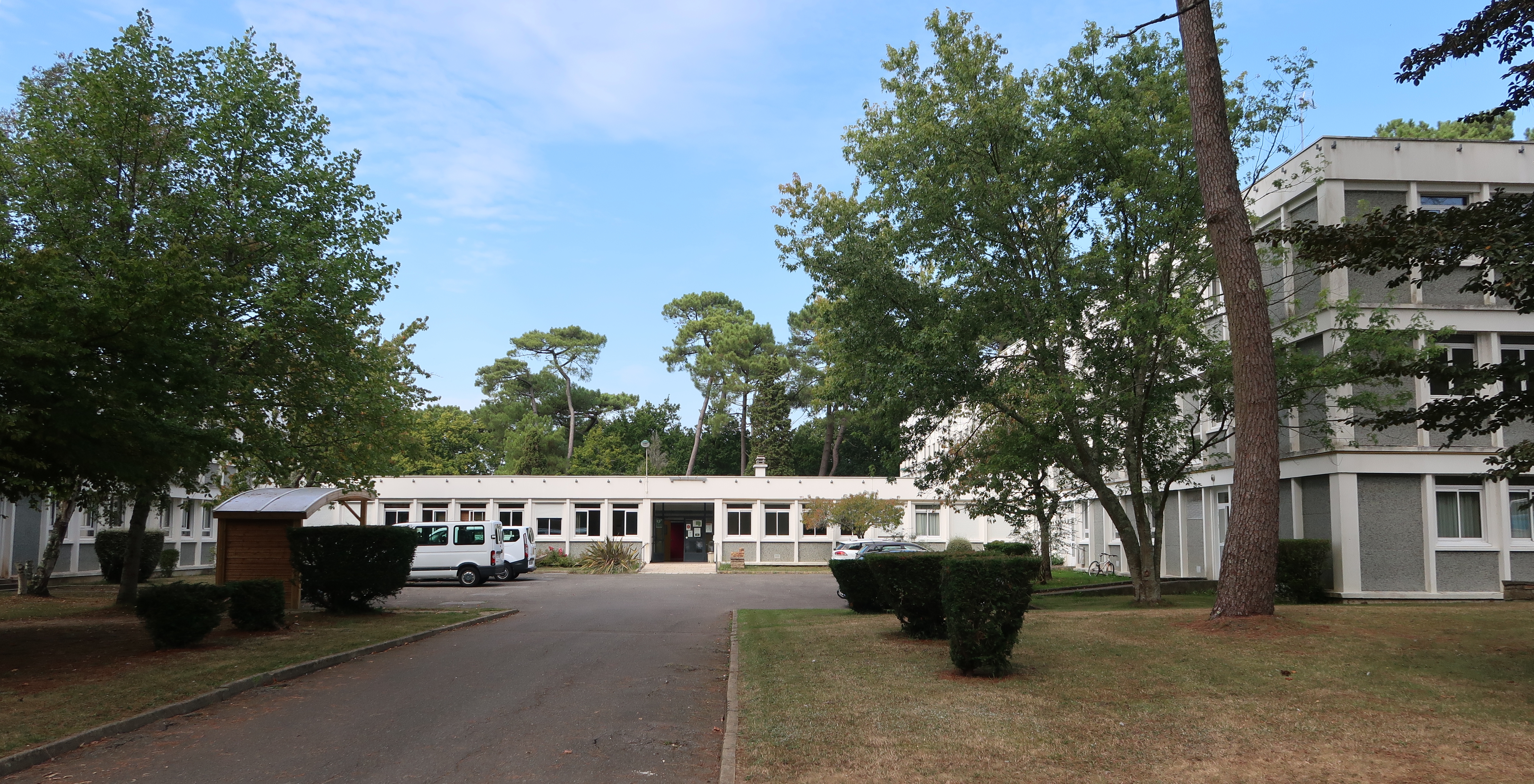 Administration, façade sud. A droite, l'internat, à gauche, l'externat. Yves Guillou, architecte, 1969.