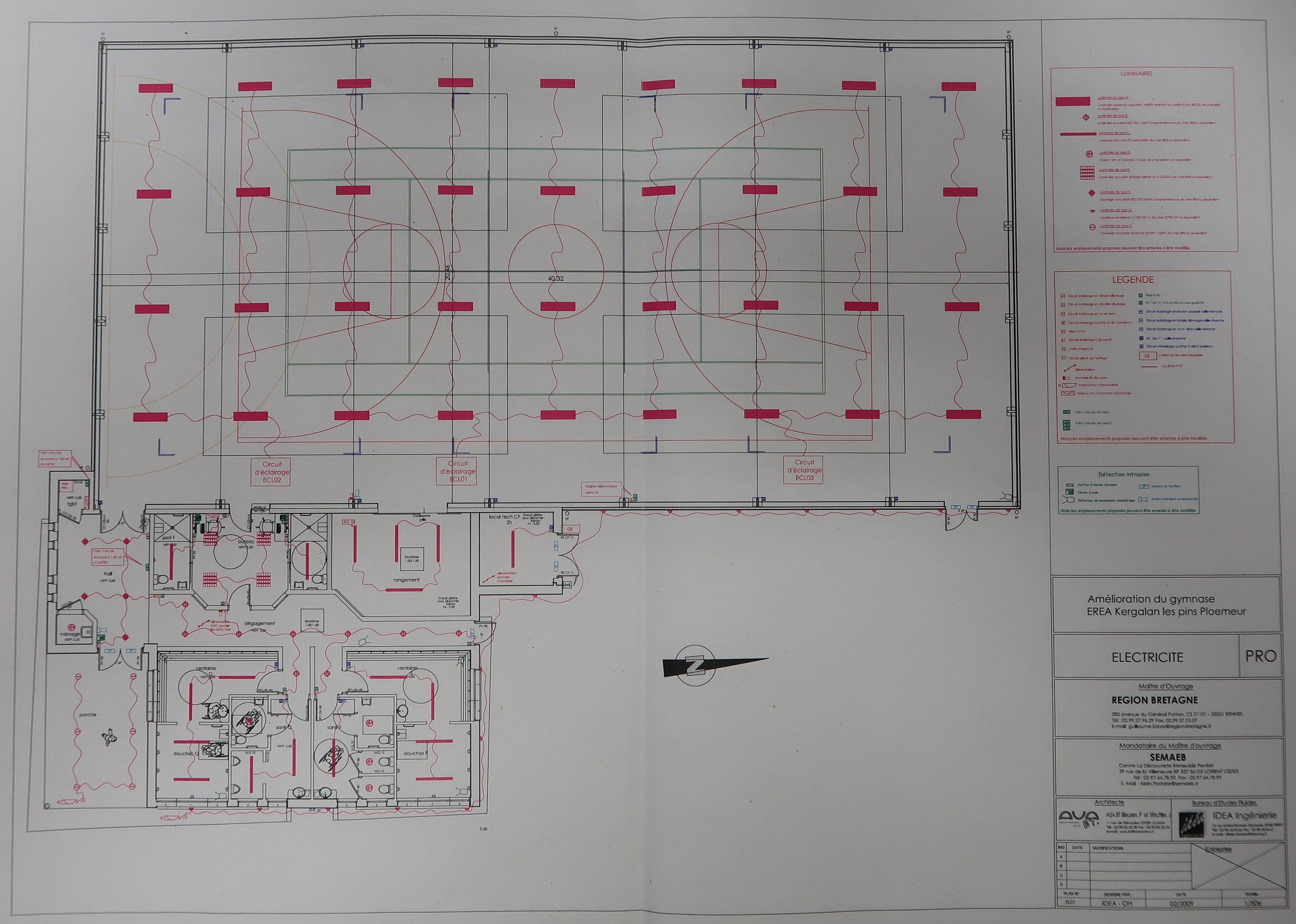 Plan de la restructuration du gymnase. AUA BT, architectes, 2009.Immatriculation