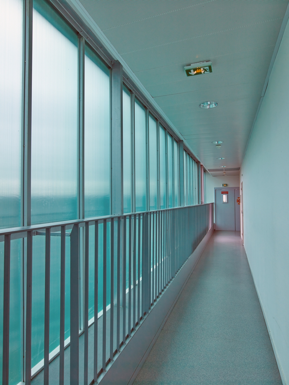 Ancienne coursive, aujourd'hui vitrée, façade sud-est de l'externat.Immatriculation