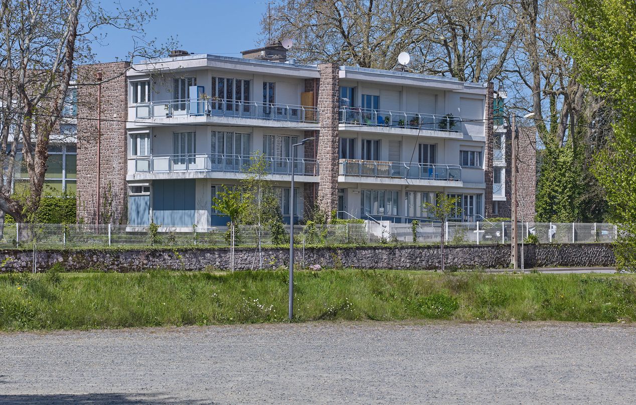 Vue d'ensemble des logements, prise du sud. R. Hummel, R. Rolland et A. Weinstein, architectes, 1961.Immatriculation