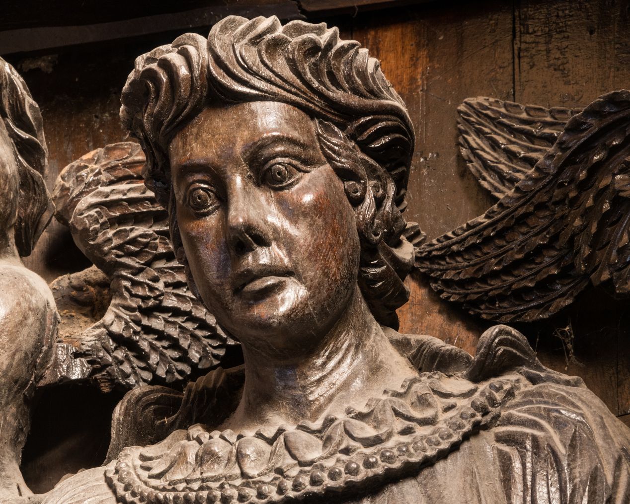 Vue de détail du visage de sainte Catherine d'AlexandrieImmatriculation