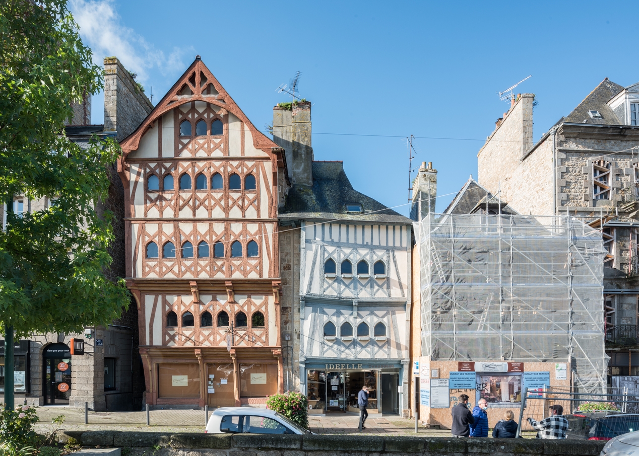 Alignement de maisons en pan de bois place du Centre.Immatriculation