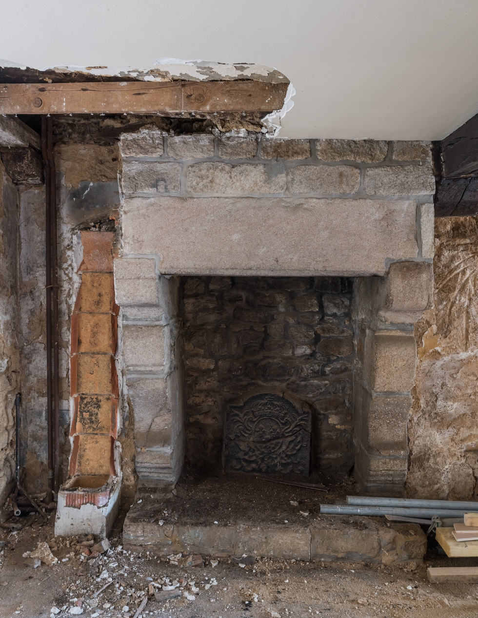 Cheminée sur le mur gouttereau ouest du premier étage (restauration en 2021).Immatriculation