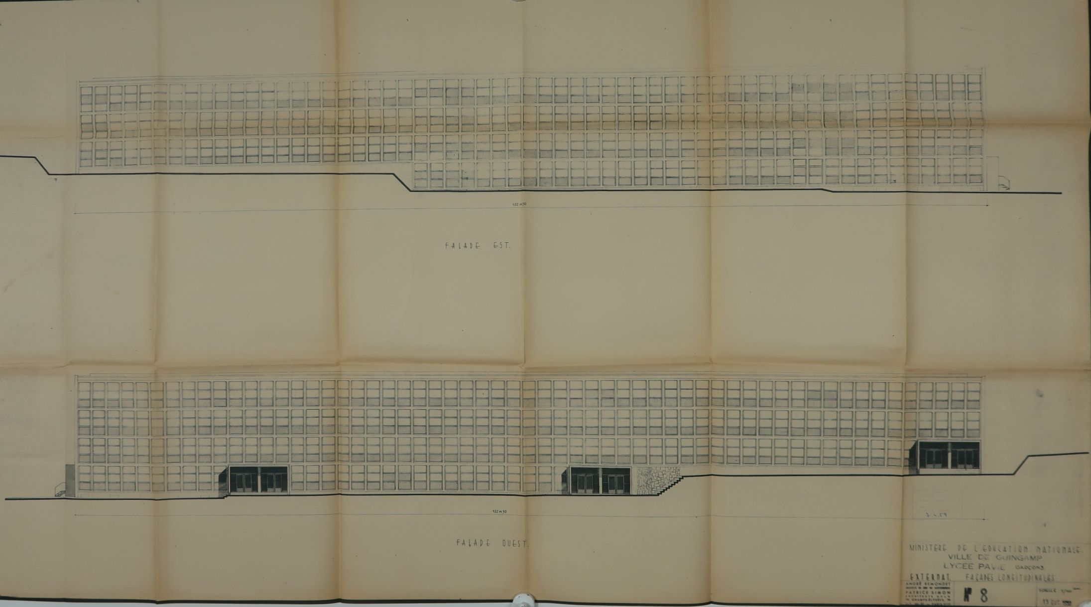 Externat. Façades longitudinales. André Remondet et Patrice Simon, architectes, 18 décembre 1958.Immatriculation