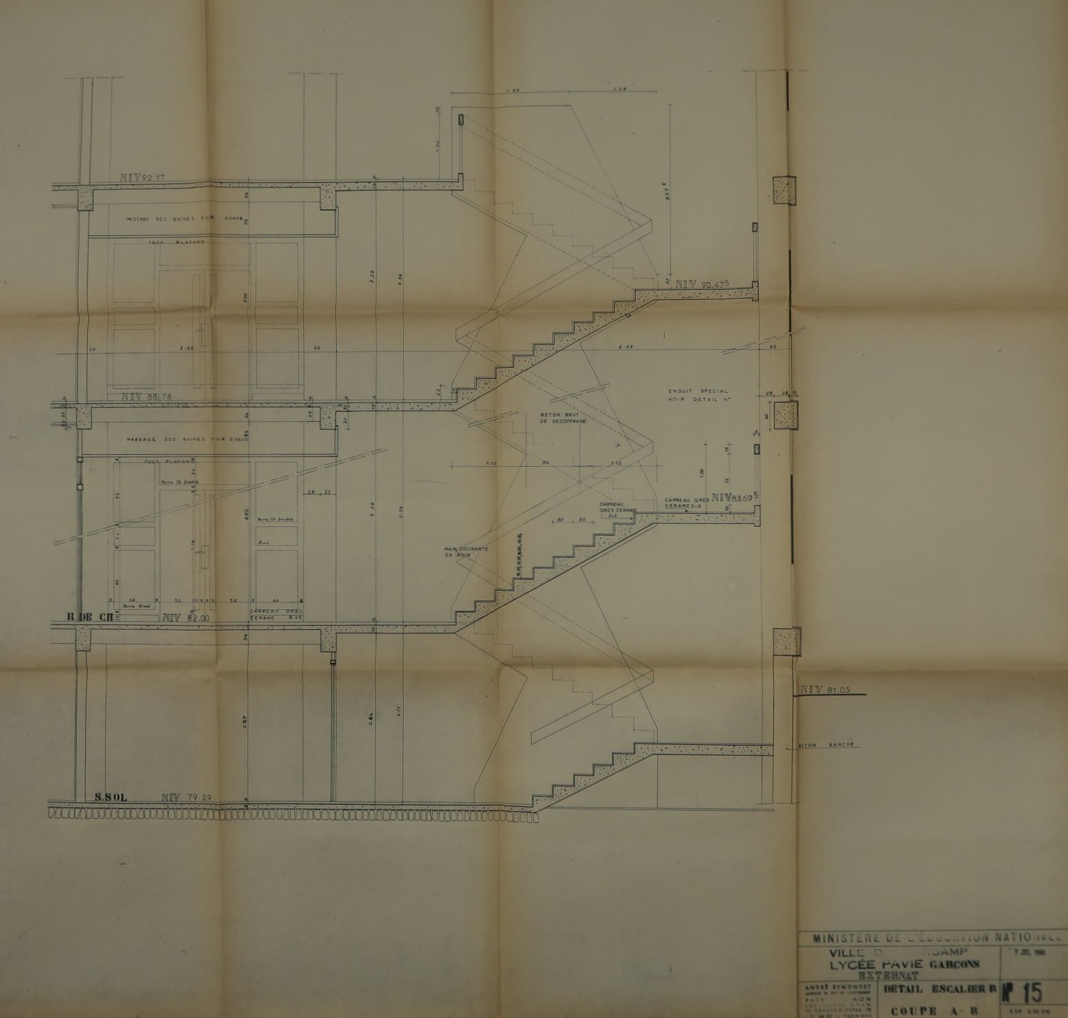 Détail escalier B. Coupe A-B. André Remondet et Patrice Simon, architectes, 7 juillet 1960.Immatriculation