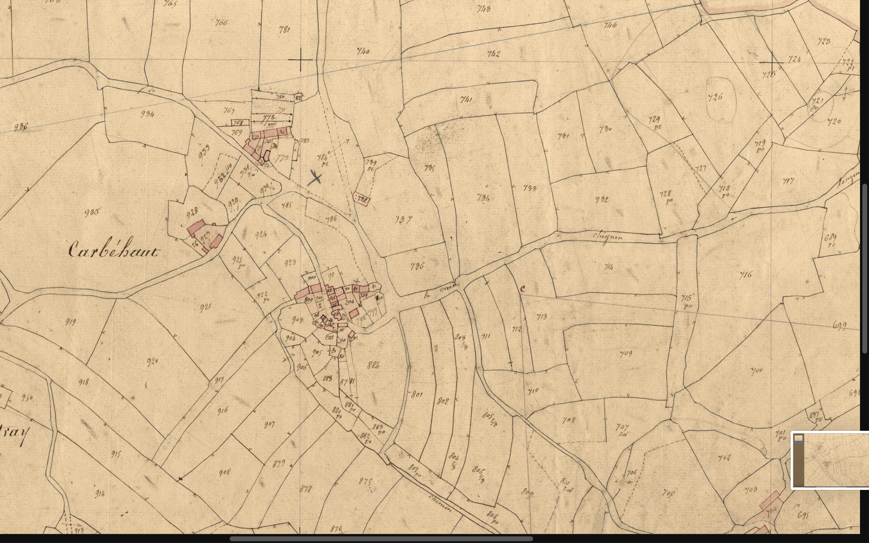 Plan de 1837 du village de CarbéhautImmatriculation