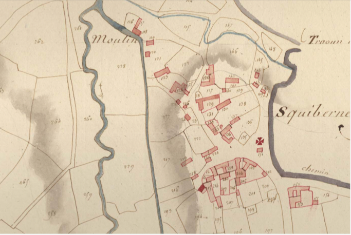 Cadastre de la commune de Pédernec de 1818, 3 P 164, section A, 1ère feuille.