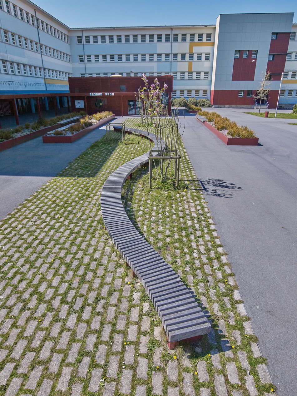 Traitement paysager de la cour et foyer des élèves (Atelier Rubin, architectes, vers 2013).Immatriculation
