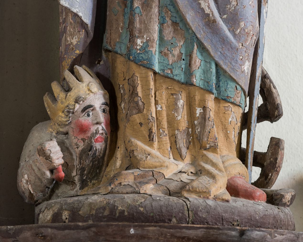 Vue de détail : statue de sainte Catherine d'Alexandrie foulant aux pieds MaximilienImmatriculation