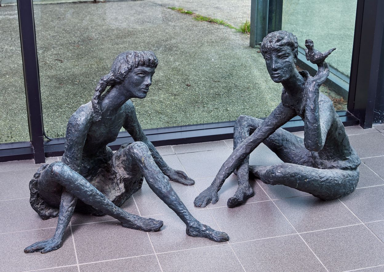 Noor Zade Brener (née en 1922). Deux sculptures en bronze, en ronde bosse représentant la jeunesse (vers 1961)Immatriculation