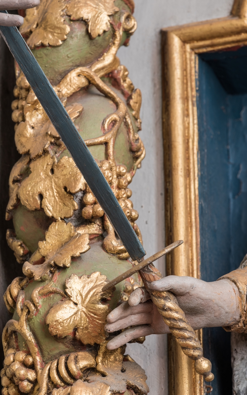 Vue de détail de l'épée tenue par sainte Catherine d'AlexandrieImmatriculation