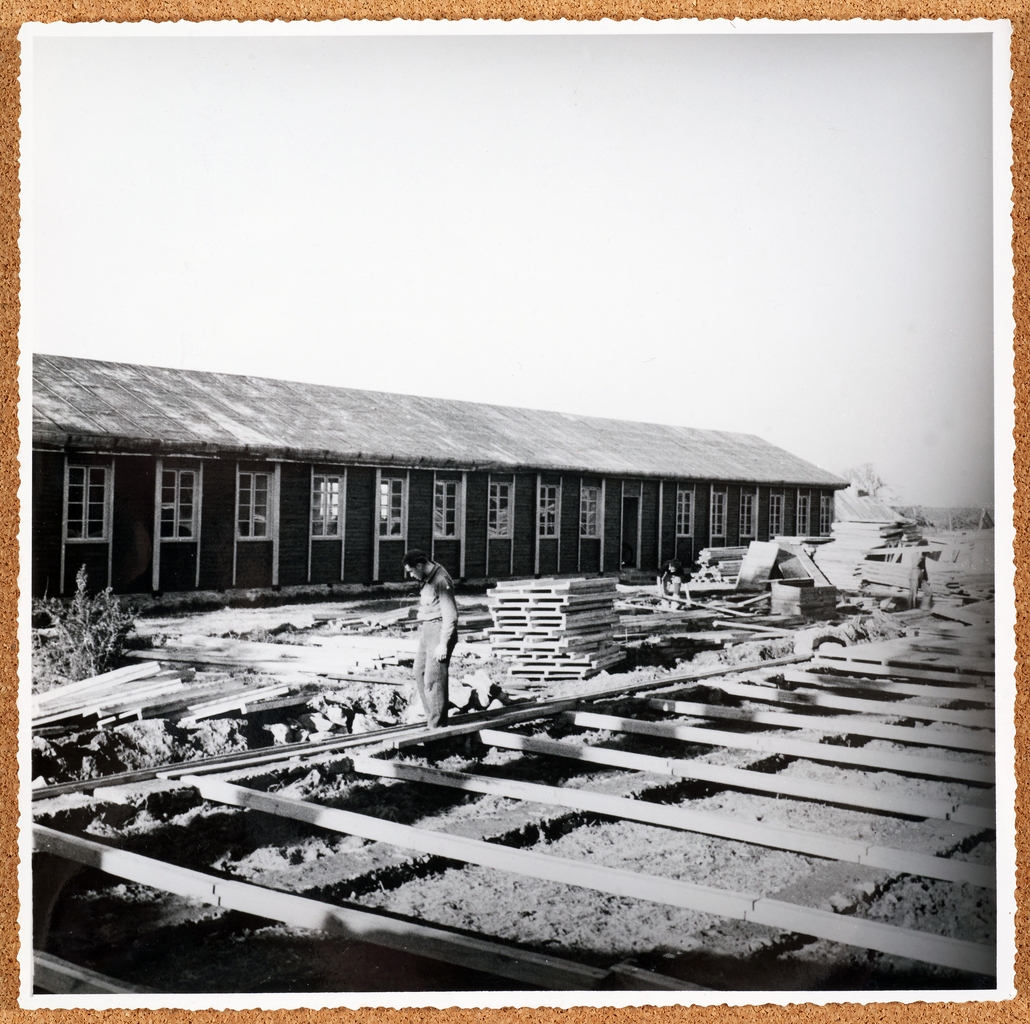 "Construction des baraques. Rue Jules Lesven. 2e baraque." (Entre guillemets, légende au dos de la photo).Immatriculation