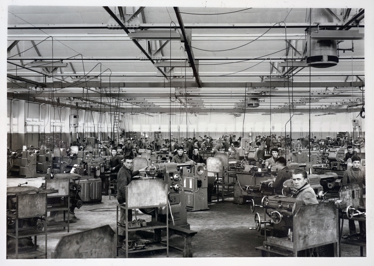 Lycée Vauban de Brest : sans cote. Vue intérieure des nouveaux ateliers, vers 1958