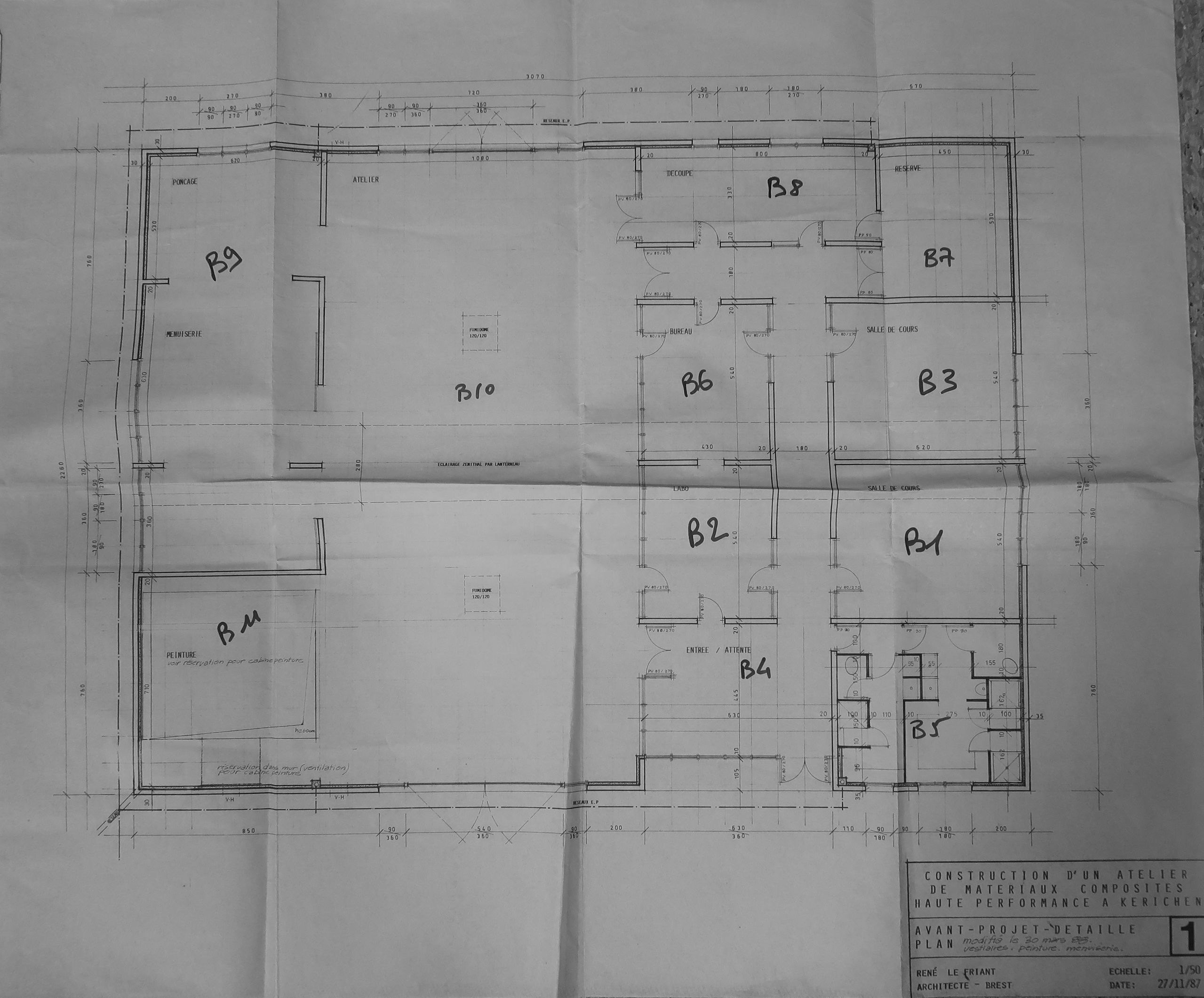 Archives du Lycée Vauban de Brest, Plan de l'atelier matériaux composites, 1987.
