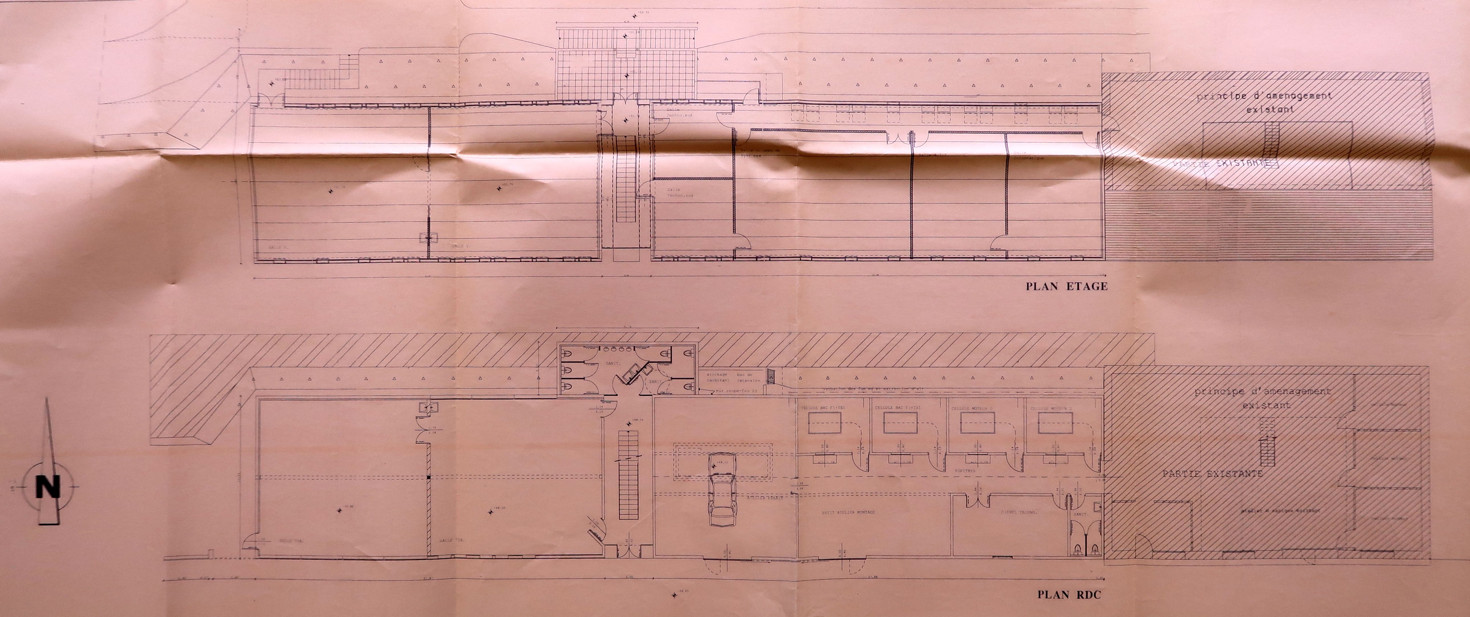 Ateliers et salles de technologie, plans rez-de-chaussée et étage. Gildas Nédélec, architecte, 26 mars 1993.Immatriculation