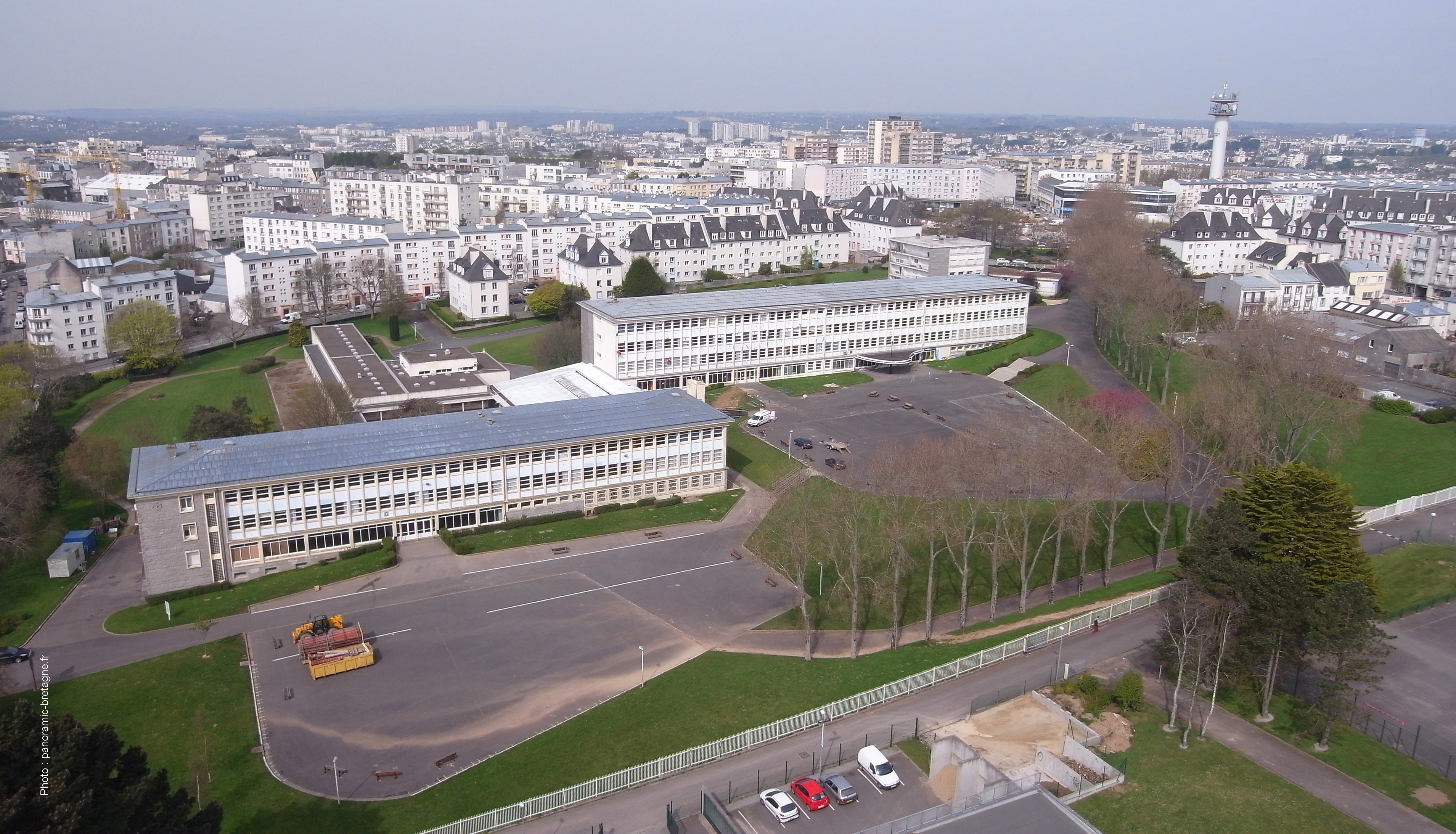 Vue aérienne oblique de l'ensemble de la cité scolaire, prise de l'est vers l'ouest.Immatriculation