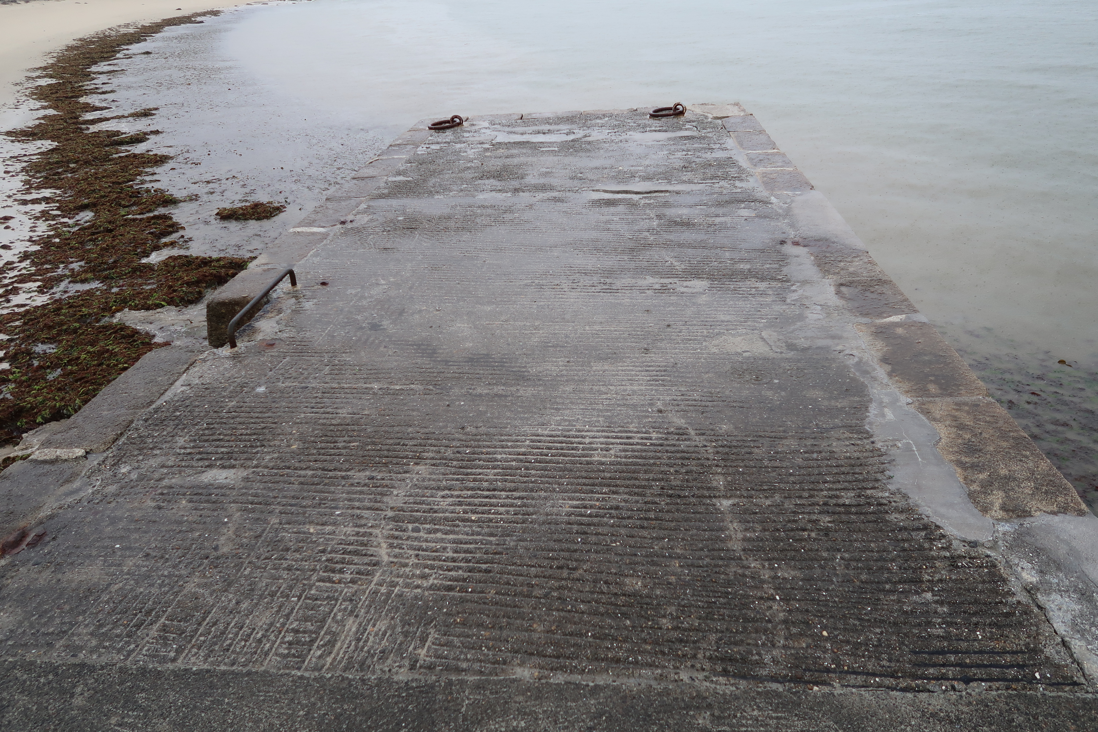 Ancienne digue de Sainte-Evette, vers le musoir, dalle béton, pierres de tailleImmatriculation