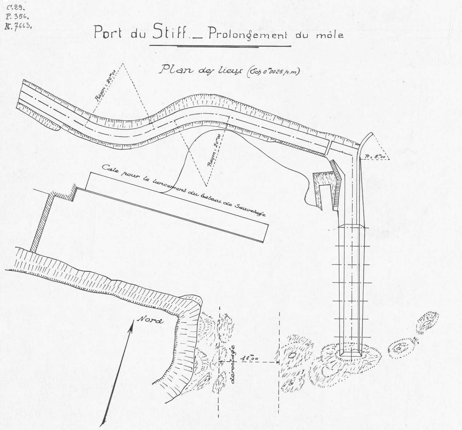 Plan des lieux : prolongement du môle (vers 1930)Immatriculation