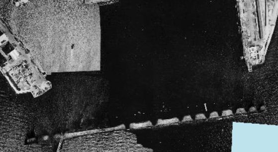 Vue aérienne, port de Brest, digue sud, minée, 1950Immatriculation