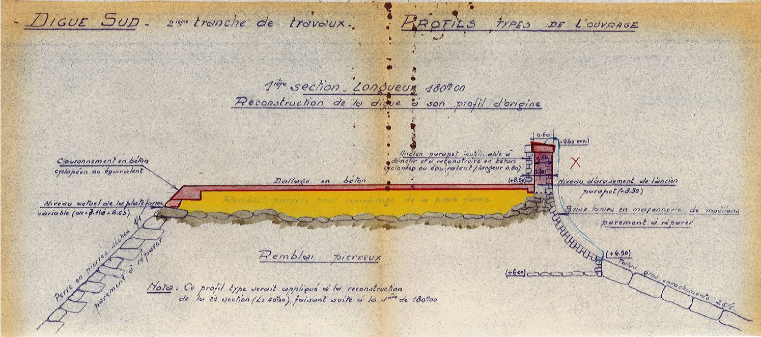 Profil type, digue sud, 2e tranche, 1ère section, 1957Immatriculation