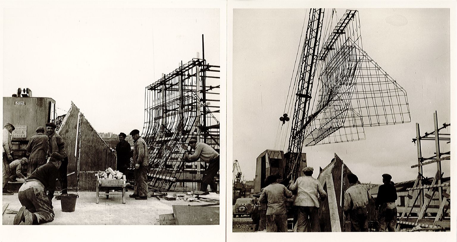 Photographies des travaux, ferraillage des brise-lames en béton cyclopéenImmatriculation