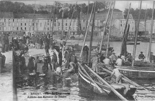 Carte postale, Brest, port de commerce, arrivée des bateaux de pêche. Ed. Peron, BrestImmatriculation