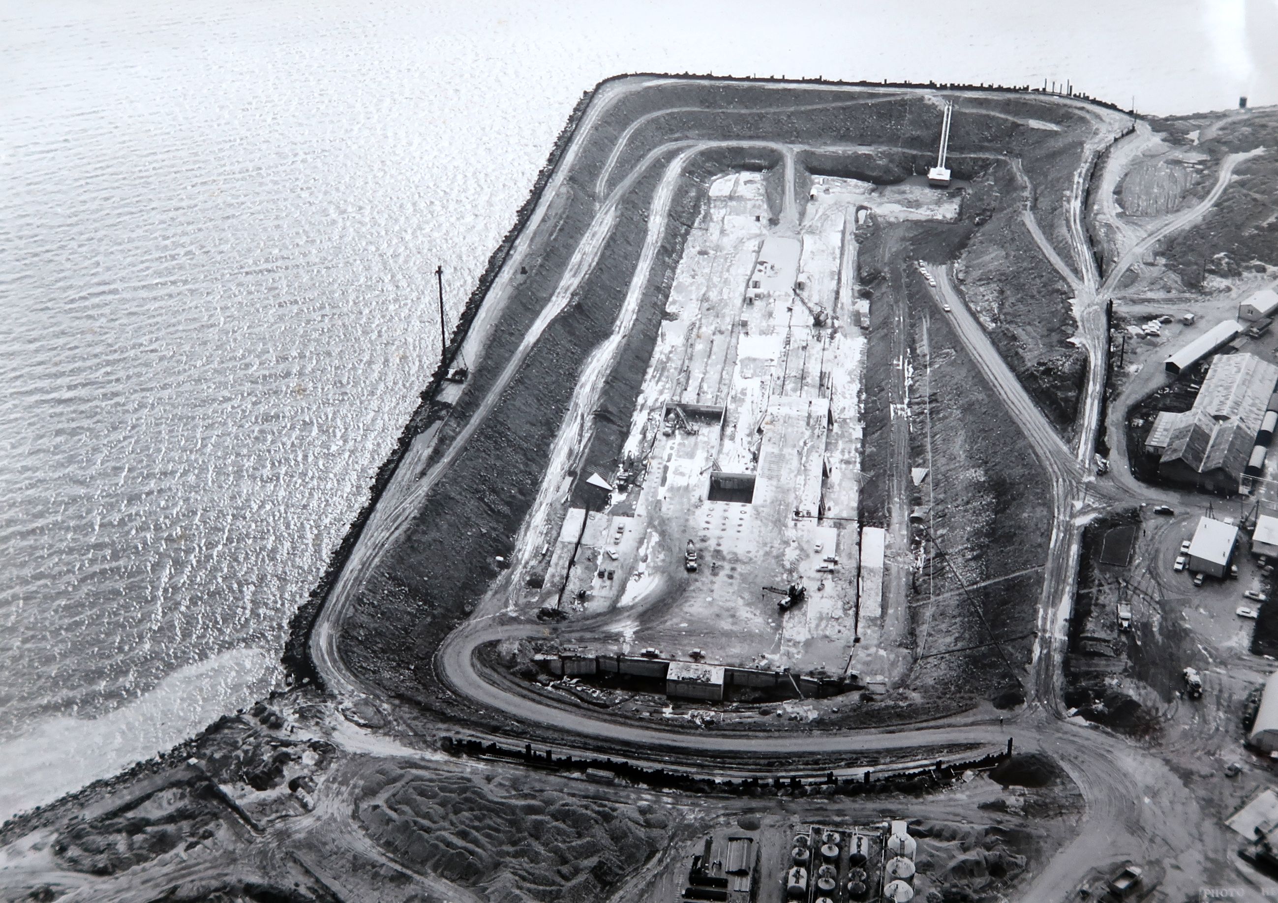 Travaux de construction de la forme 2 : mise en œuvre du radier ; forage pour ancrage en cours (10/1965)Immatriculation