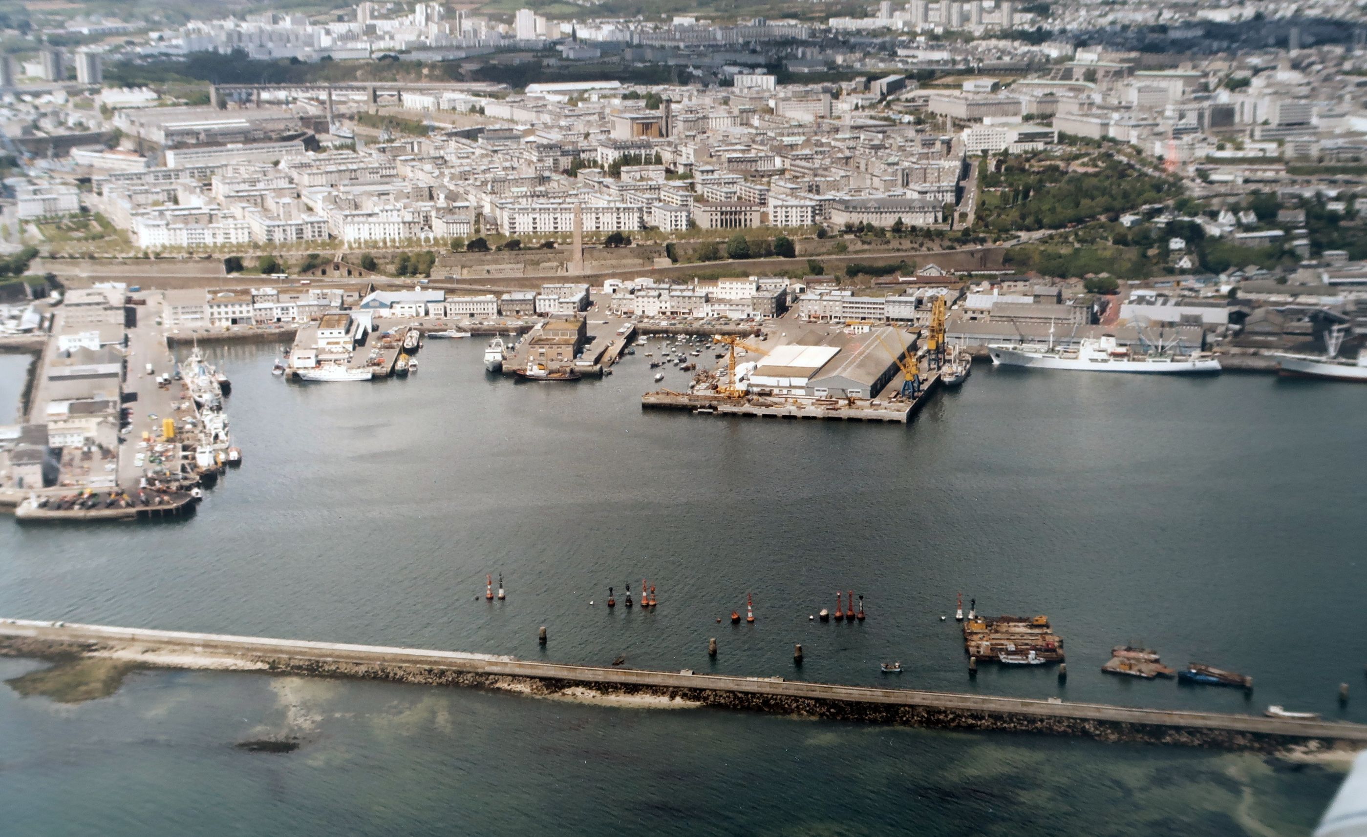 Vue aérienne du port de Brest entre la jetée Ouest, la digue Sud et la jetée Est (1978)Immatriculation