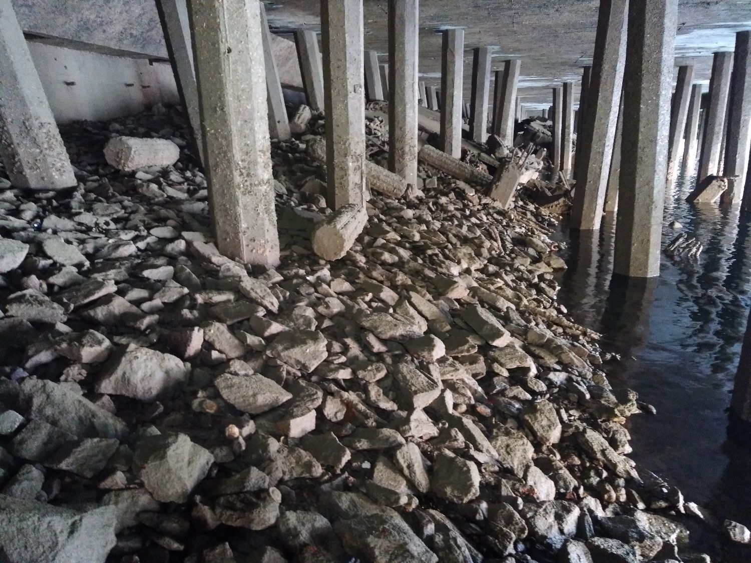 Pieux octogonaux en béton armée, talus en enrochementImmatriculation