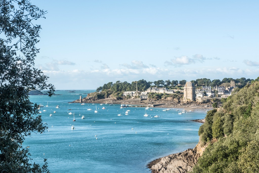 Vue de situation depuis le sud-est : la tour Solidor domine le mouillage. En arrière-plan : Saint-Servan et la cité d'AlethImmatriculation