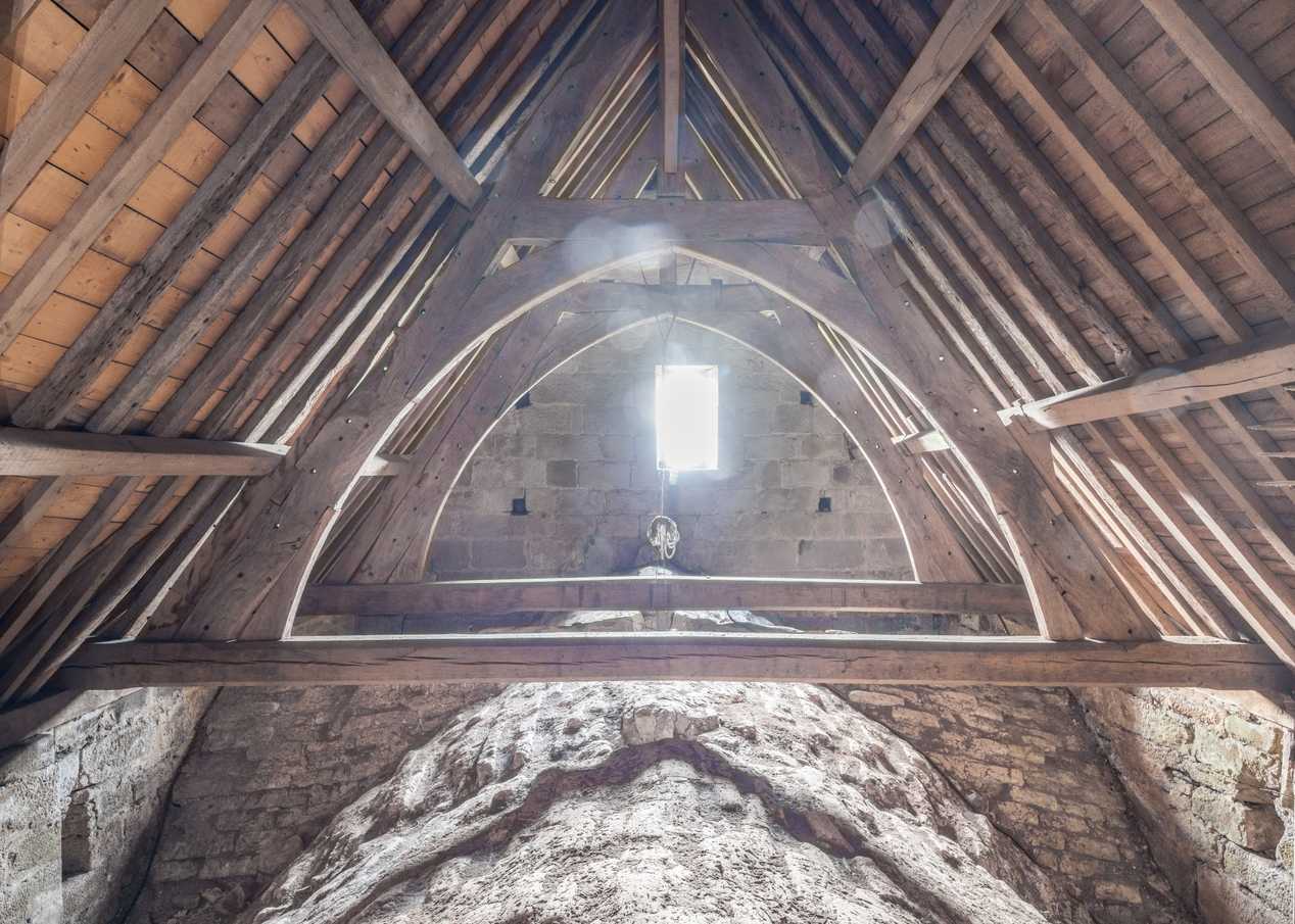 Vue de la charpente du bras nord du transept depuis la croisée.Immatriculation