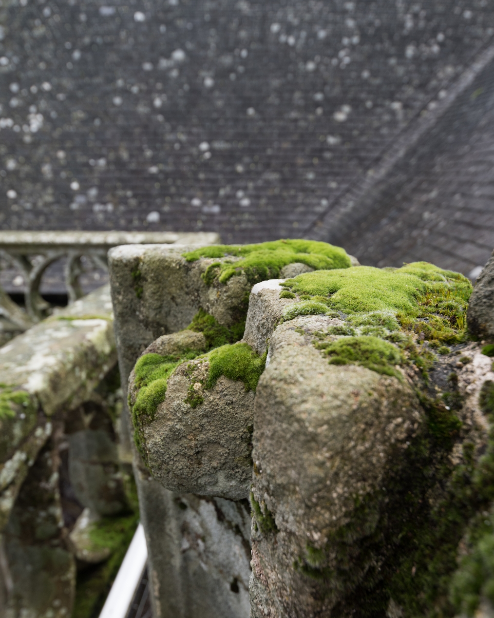 Vue de détail : vestige d'un écoulement d'une précédente toiture, au sud du chevet.Immatriculation