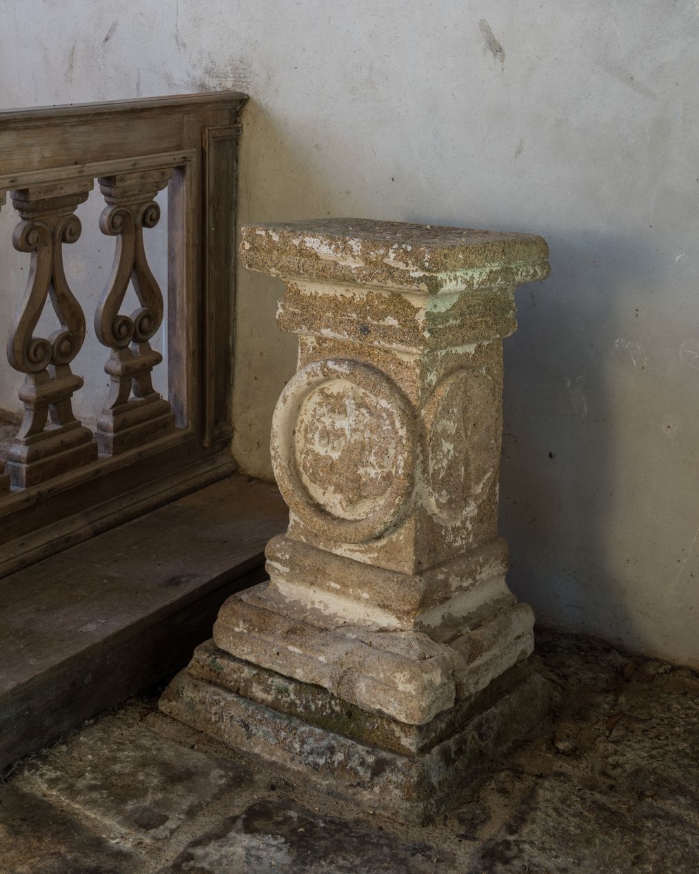 Socle orné d'un blason sur un côté et d'une croix pattée sur un autreImmatriculation