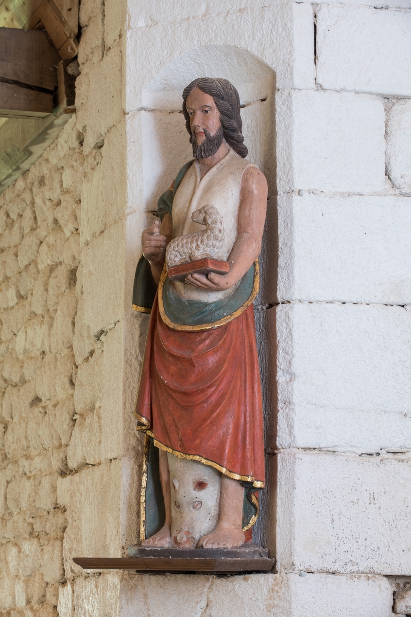 Statue de saint Jean Baptiste dans une niche à l'angle du croisillon sud et de la nefImmatriculation