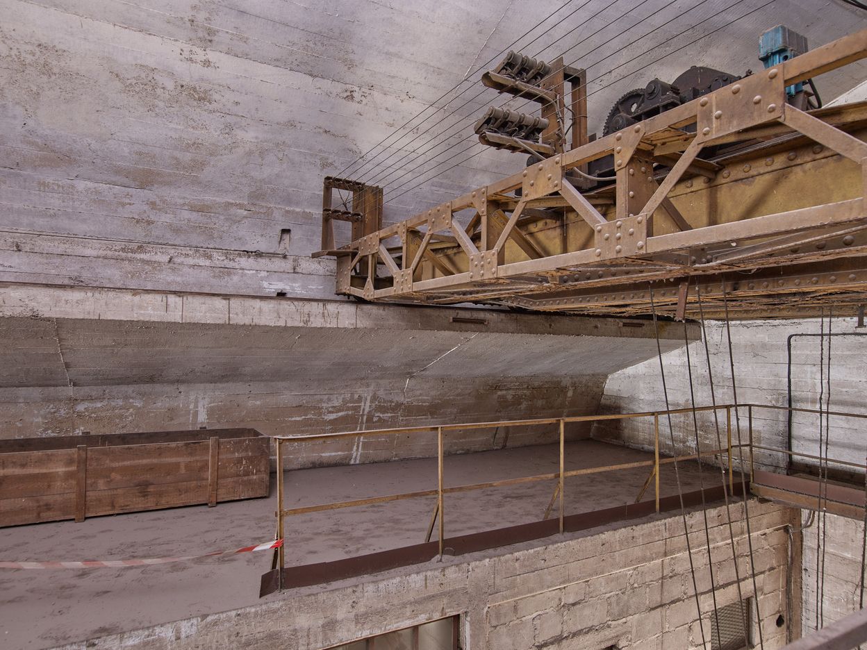 Vue de détail du pont roulant arrière doté de ses deux treuils (pont roulant de la période allemande)Immatriculation
