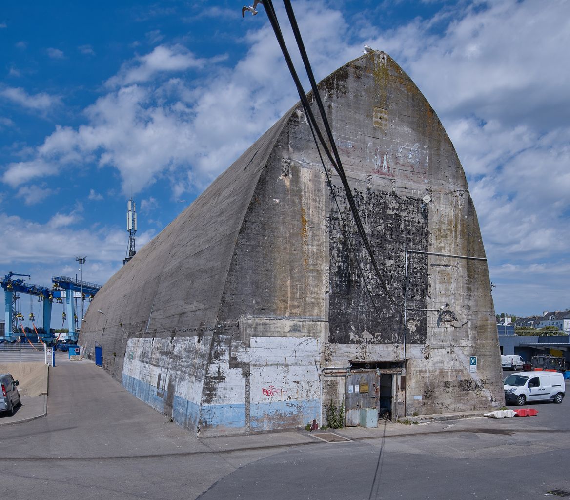 Dom-bunker Est T5 dit bunker-cathédrale, puis entrepôt, aire de réparation navale, port de pêche de Keroman (Lorient),