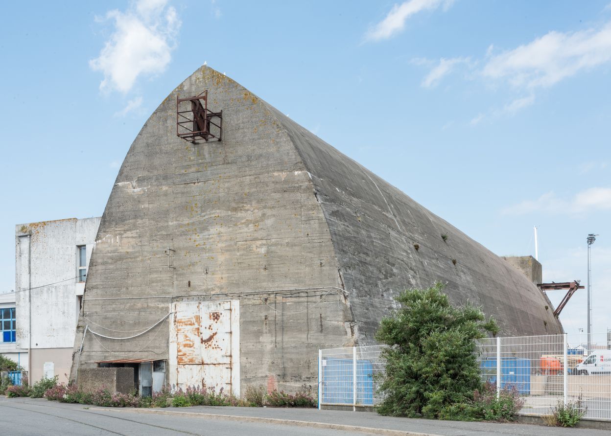 Dom-bunker Ouest T6 avec encuvement pour canon antiaérien puis dit dit bunker-cathédrale usine de construction navale, aire de réparation navale, port de pêche de Keroman (Lorient),
