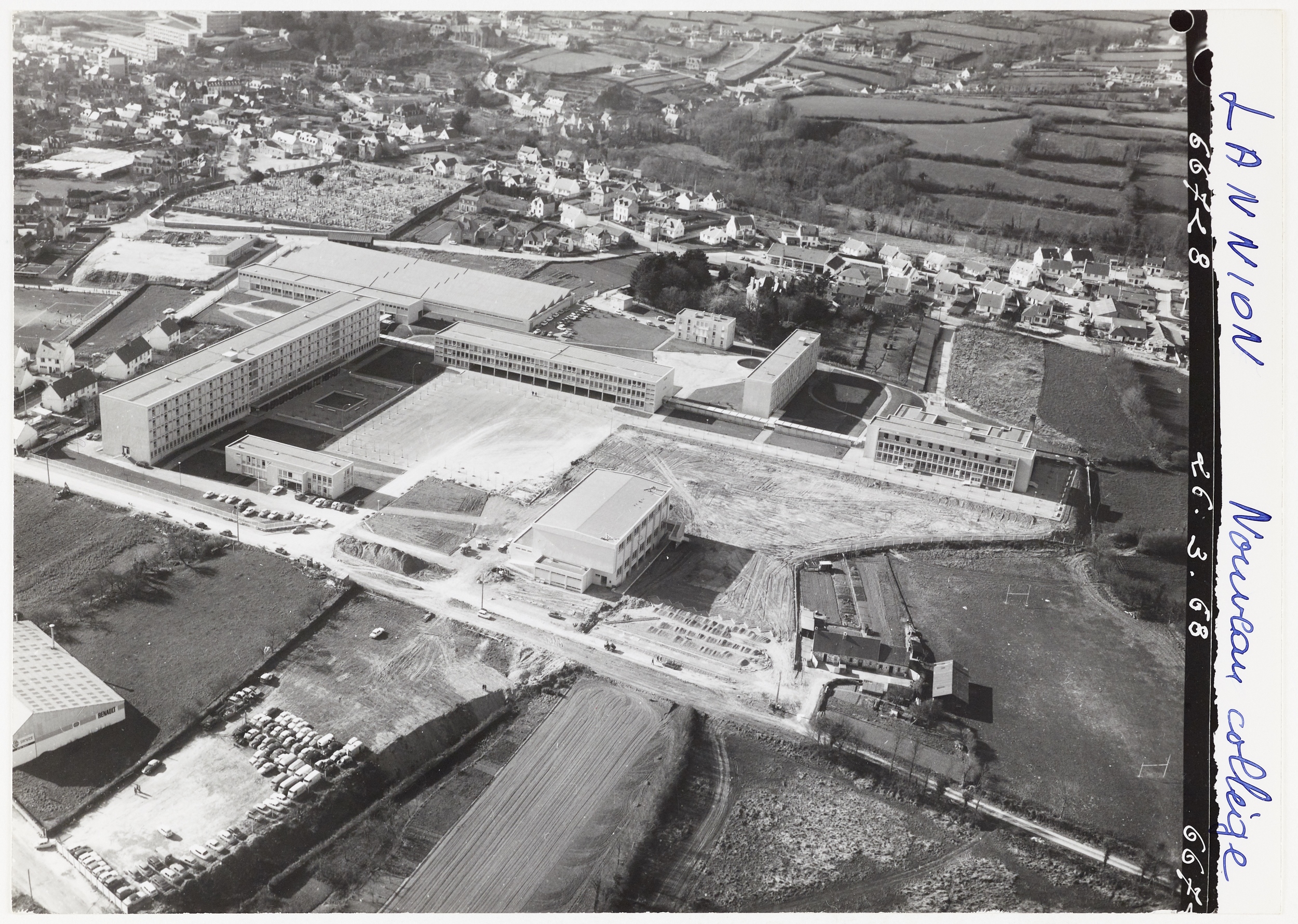 Musée de Bretagne (Rennes) : M0212_AG-971-37-9894-2-U ; M0212_AG-971-37-12375-2-U ; M0212_AG-971-37-9895-2-U ; M0212_AG-971-37-12299-2-U. Heurtier, Vue aérienne Heurtier : "Lannion, collèges et nouveau collège", 1966 et 1968