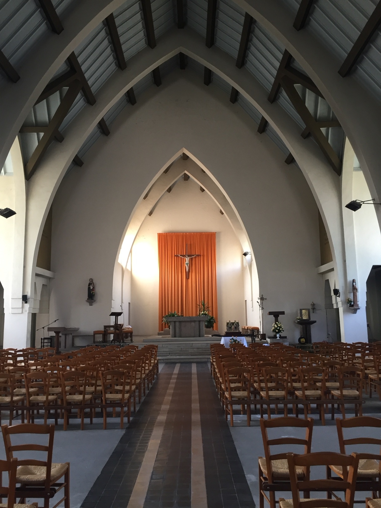 Vue intérieure grands arcs-doubleaux de béton pour la nefImmatriculation
