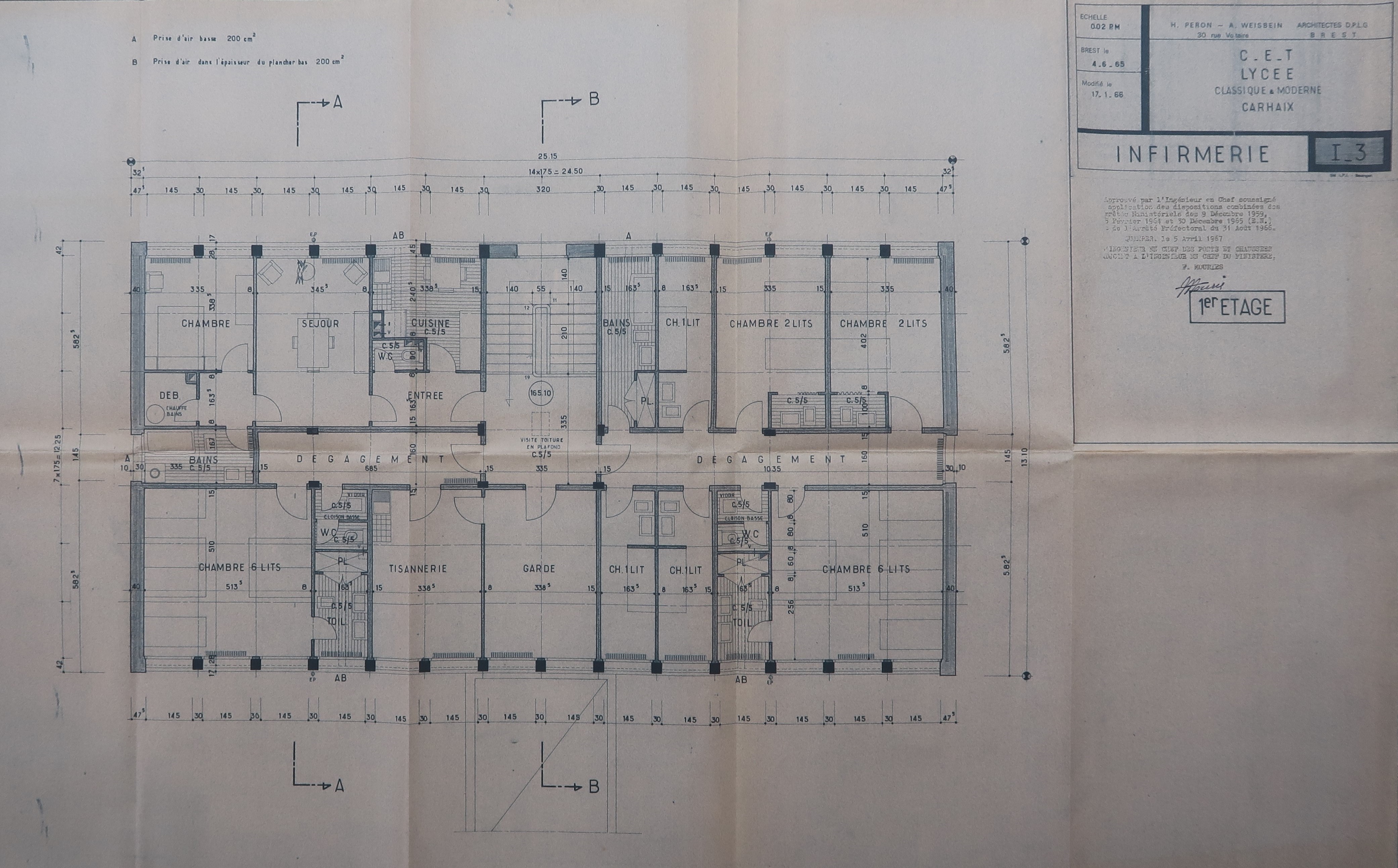 Plan du 1er étage, H. Péron et A. Weisbein, architectes, modifié le 17/01/1966.Immatriculation