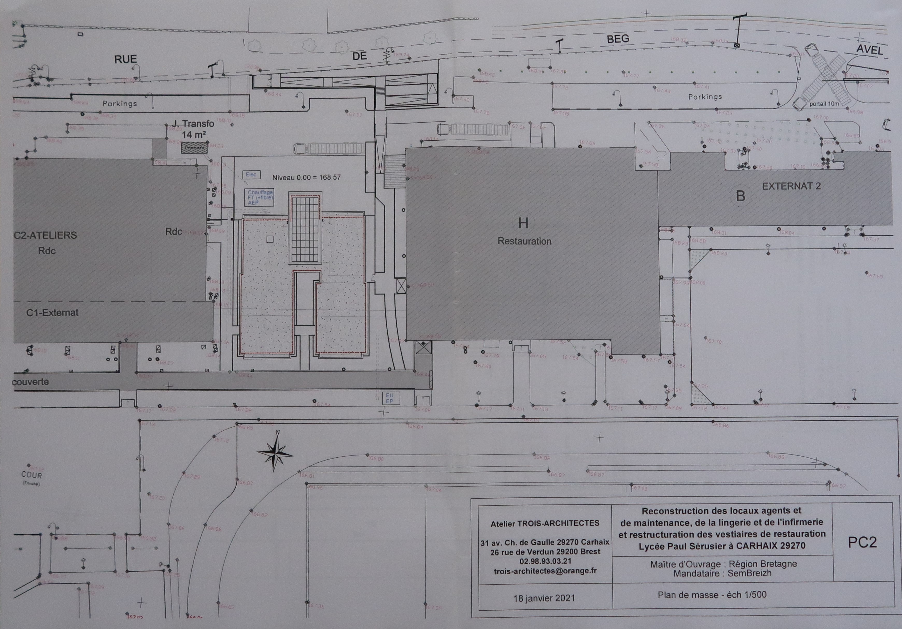 Plan d'implantation des nouveaux locaux agents, lingerie et infirmerie. A3A, architectes, 2021.Immatriculation