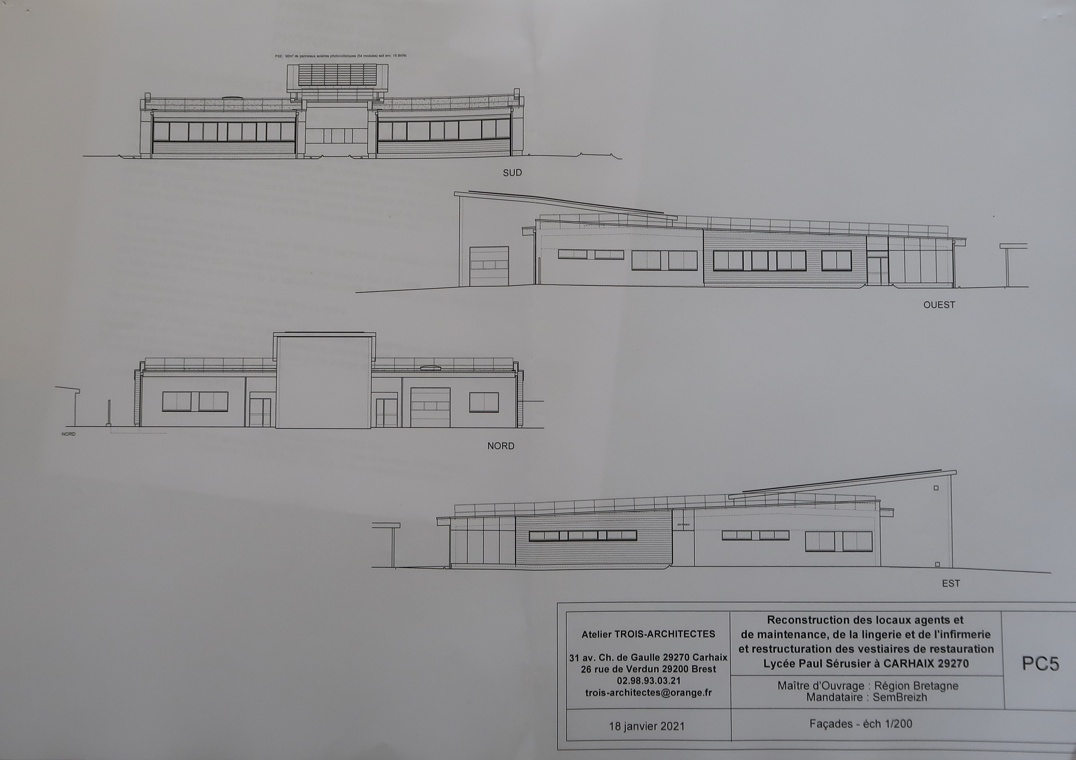 Elévations des façades des nouveaux locaux agents, lingerie et infirmerie. A3A, architectes, 2021.Immatriculation