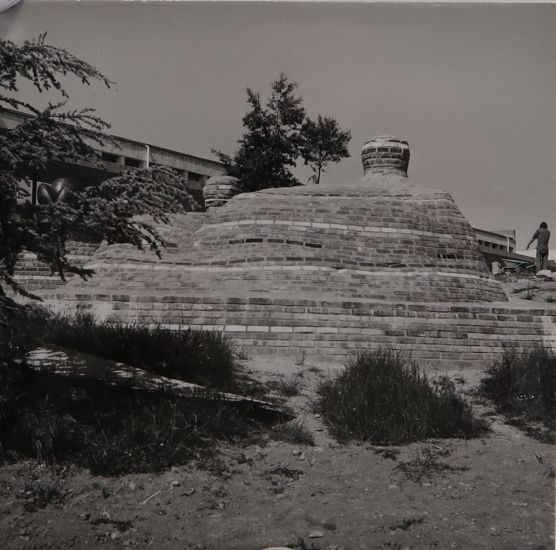 Sculpture de Klaus Schultze, juste après son achèvement en 1973 (une personne travaille encore sur les cheminements ou le muret en brique).Immatriculation