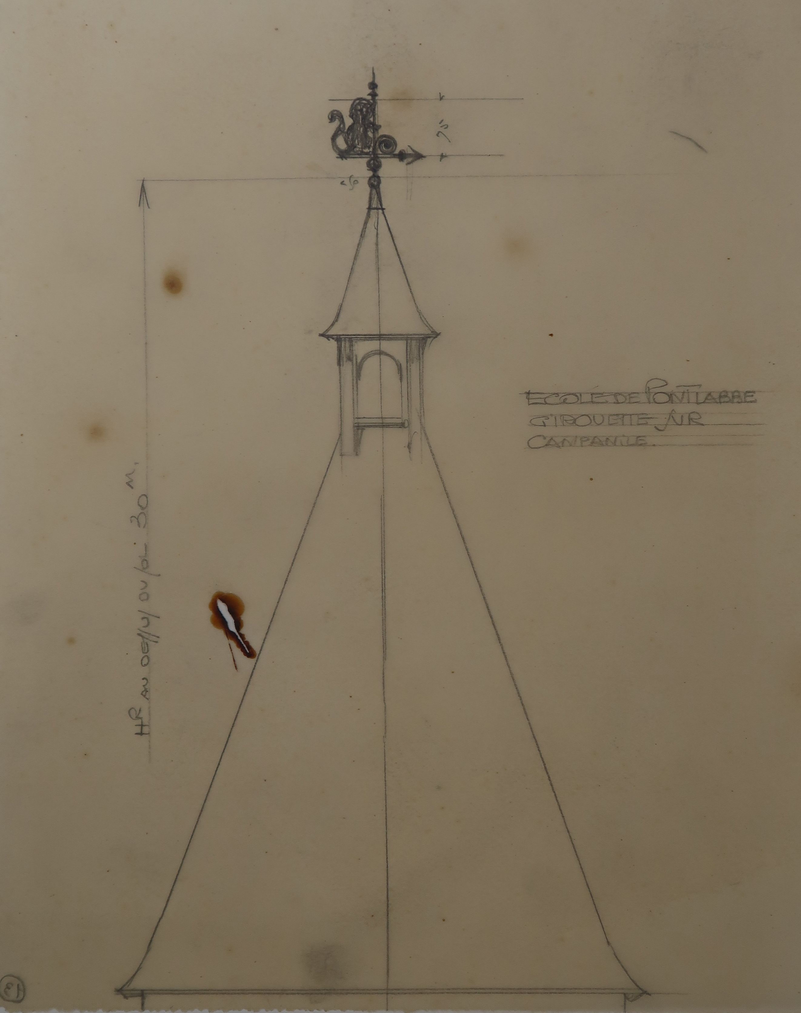 Epis de faîtage du campanile. G-R. Lefort, architecte, vers 1925.Immatriculation