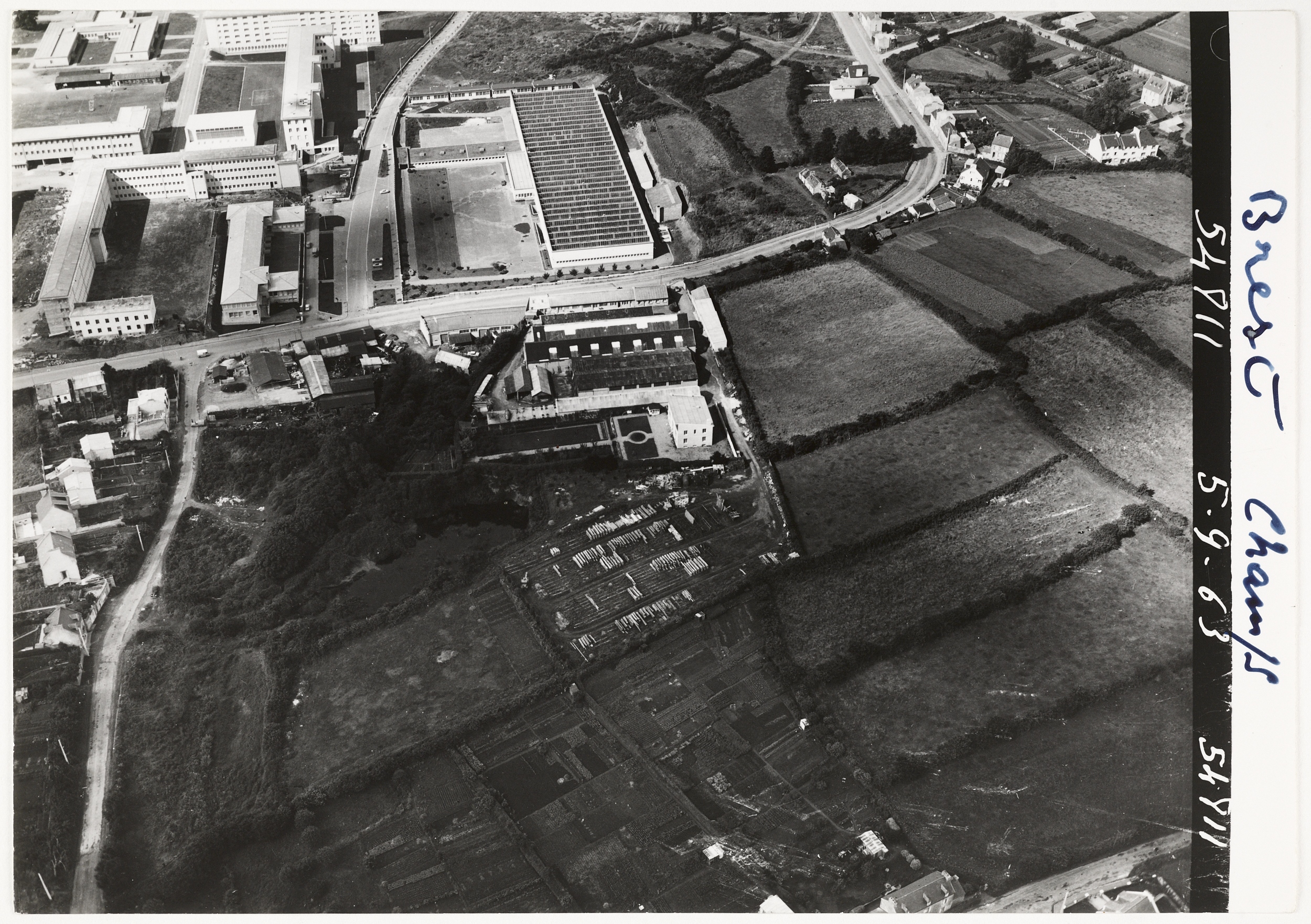 Musée de Bretagne (Rennes) : M0212_971-0037-2298_U et M0212_AG-971-37-4811-2-U. Vue aérienne Heurtier, 1962