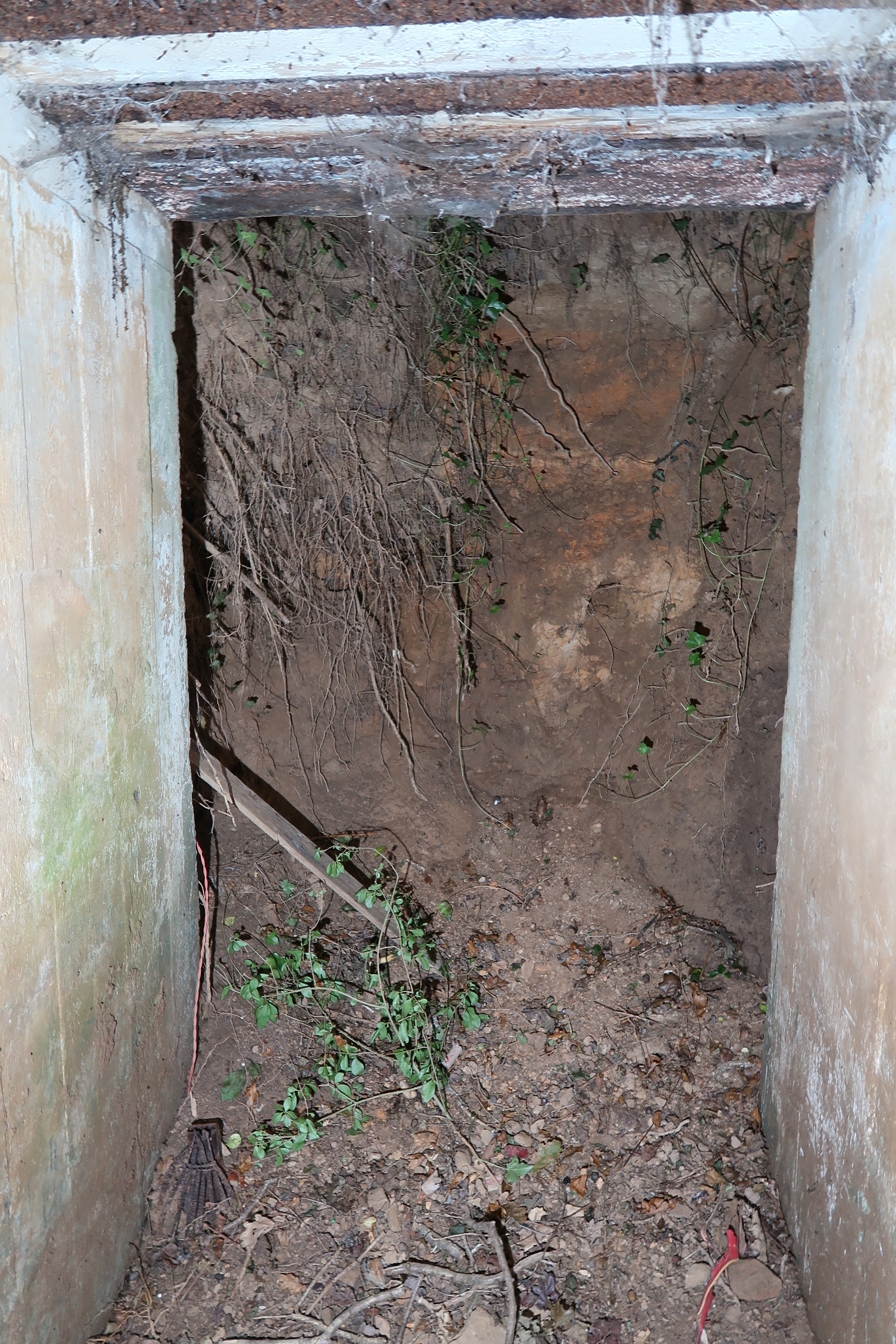 Vue de l'entrée ouest en partie remblayée et envahie par la végétation (état en 2021)Immatriculation
