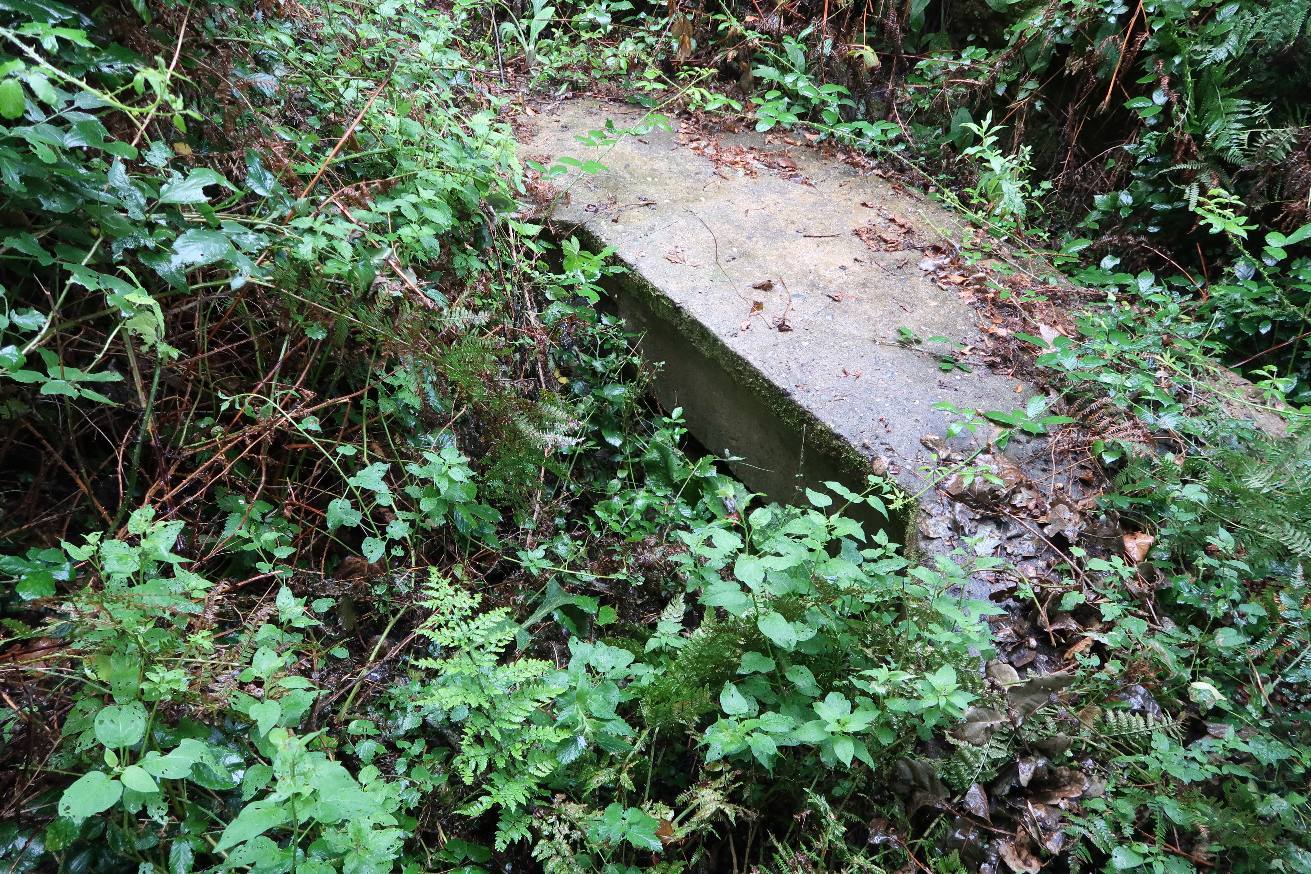 Vue du bunker en partie remblayé et envahi par la végétation (état en 2021)Immatriculation