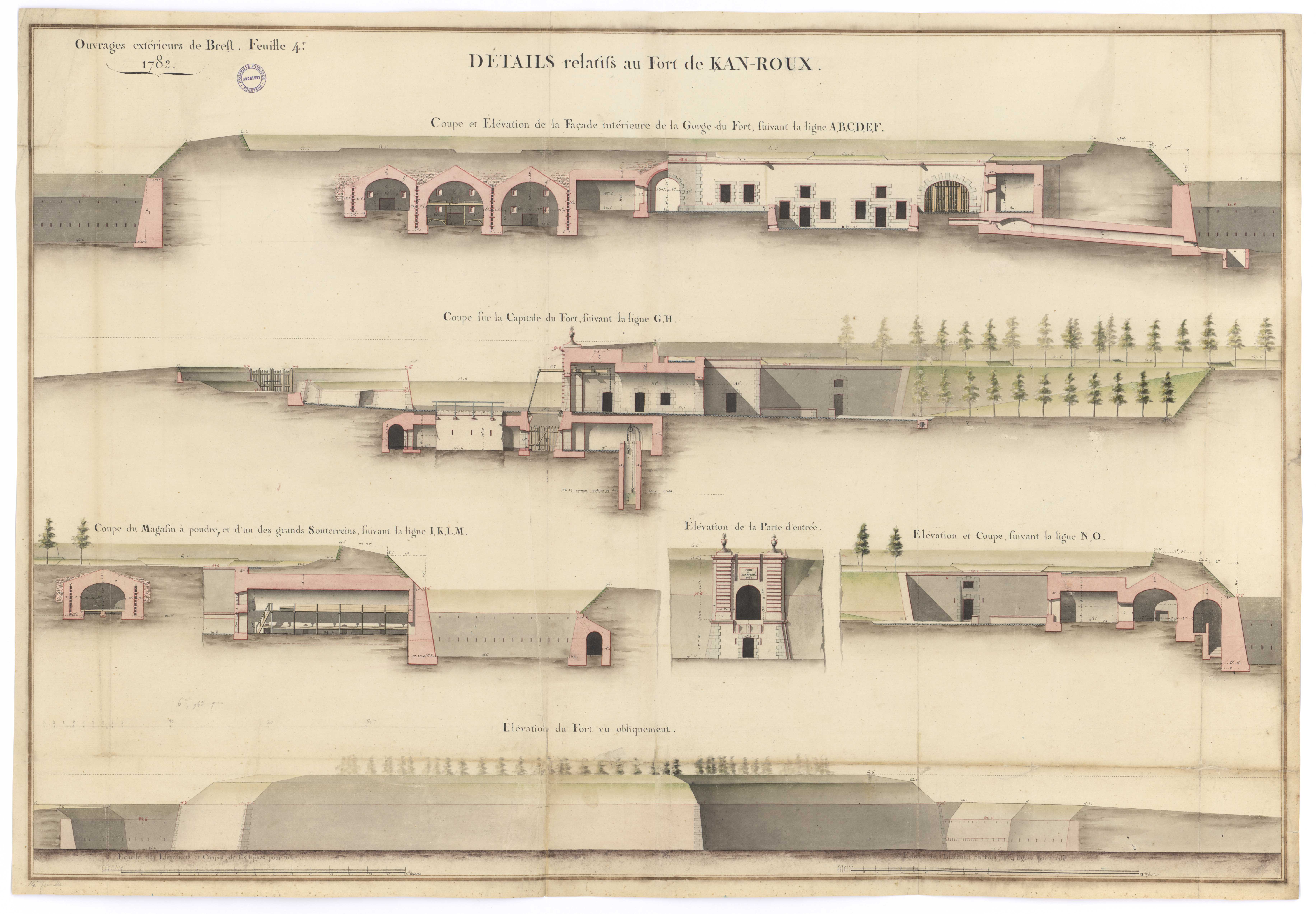 Coupes et profils du Fort de Keranroux, 1782 (Archives départementales du Finistère, 9Fi1)Immatriculation