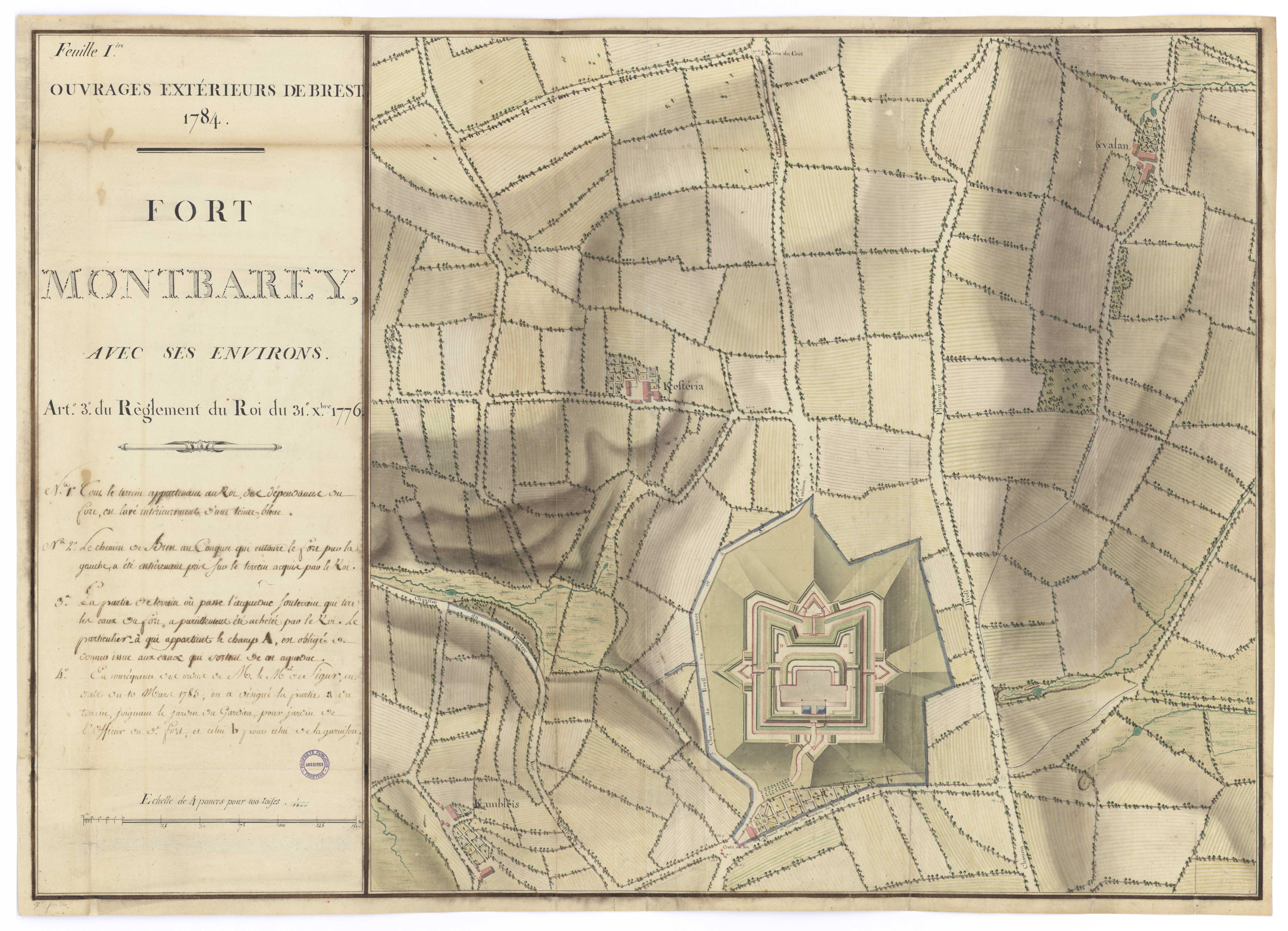 Plan du Fort Montbarrey avec ses environs, 1784 (Archives départementales du Finistère, 9Fi1)Immatriculation