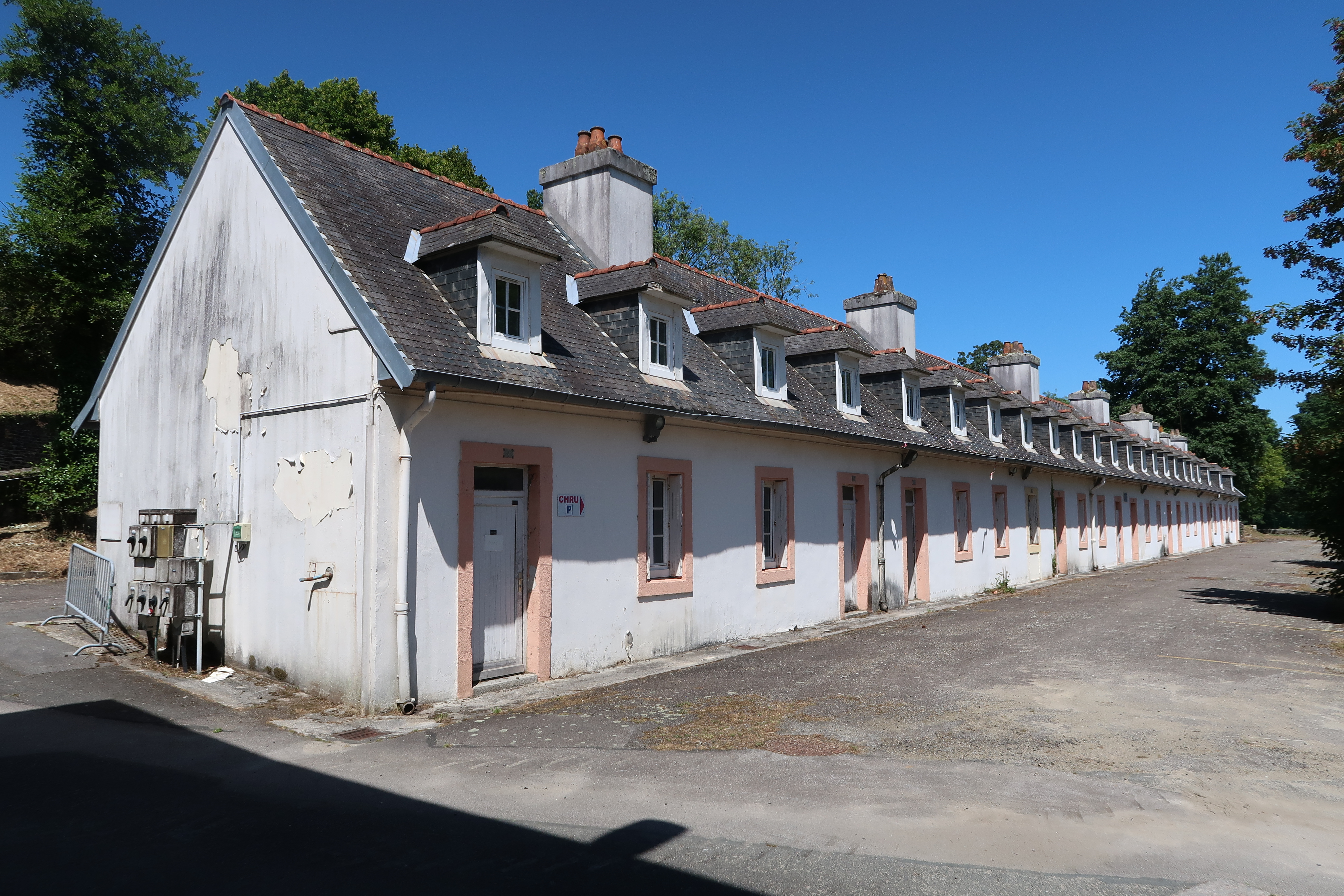 Vue générale du logement d'ouvriers actuellement bâtiment Duplessis : élévation sud donnant sur la Penfeld (état en 2022)Immatriculation